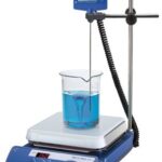 Pacote C – MAG HS 7 – pacote com haste de suporte, mufa, haste de retenção, termômetro e agitador magnético com aquecimento, faixa de agitação até 1500 rpm, temperatura de aquecimento até 500 °C e volume até 10 litros